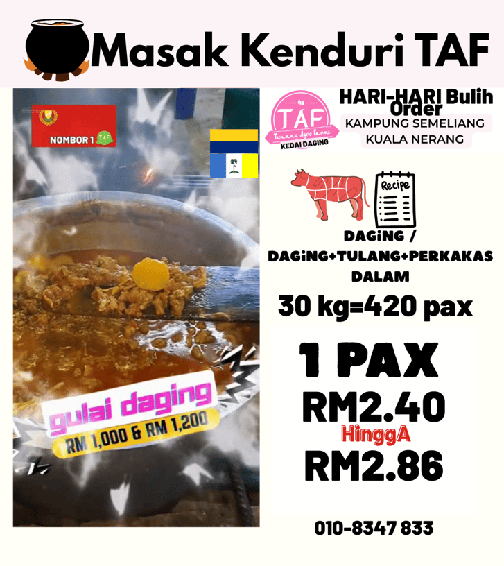 TAF Tenang Agro Farm adalah pembekal daging lembu, kambing aqiqah dan korban yang berpangkalan di Kedah.